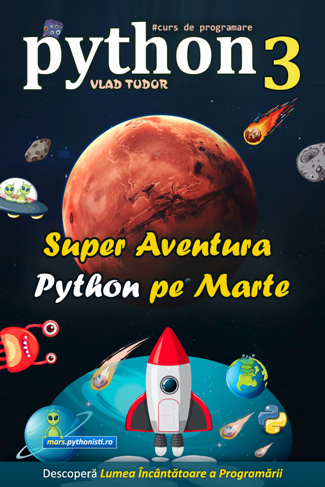O gândire analitică solidă, combinată cu una algoritmică, reprezintă un real plus în viața celor mici! Limbajul de programare Python este super distractiv pe Marte, planetă ce a devenit visul acestui secol în strădania noastră spre evoluție!